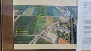 Großer, frei angeströmter Landeplatz, freier Anflug möglich, direkt an Straße, großer Windsack, nciht auf umliegenden Feldern landen
