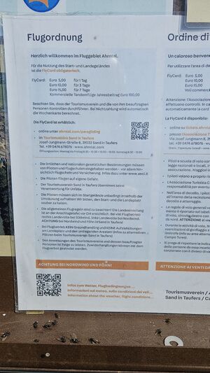 Die Landekarte/Fly Card kann inzwischen auch online erworben werden. Siehe QR-Code am Aushang. | |||