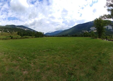 Hauptlandeplatz von Saint André beim Campingplatz für Drachen und Gleitschirm. Der Landeplatz ist sehr groß, ca. 400m, und hindernisfrei.