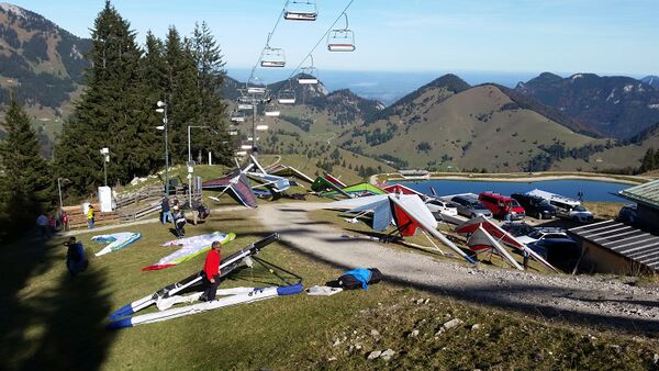 Frei angeströmter Wiesenstart mit optimaler Neigung. Hier starten sowohl Drachen, als auch Gleitschirme.